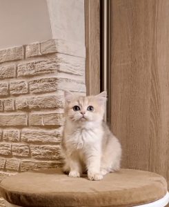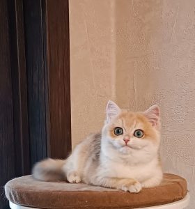 ХАРАКТЕР … Мной замечено, что он отличается от однотонных британцев… Дружелюбные, чуткие и очень ласковые с сильной ориентацией на человека с частично собачьими повадками. Очень осторожно относятся к незнакомым людям одновременно с безграничной любовью к домашним членам семьи. Имеют очень яркий и удивительный окрас: по корпусу более темный, по низу – более светлый, как-будто кошка одела плащ. Цвет глаз завораживает – в идеале, по стандарту они могут быть зелёные разных оттенков. Очень удобны для содержания в квартире, имеют меньше подшёрстка, чем однотонные британские кошки, и, соответственно линяют меньше, неприхотливы. Британские золотые шиншиллы очень привязываются к хозяину. Приобретая британскую шиншиллу, человек получает именно преданного товарища.